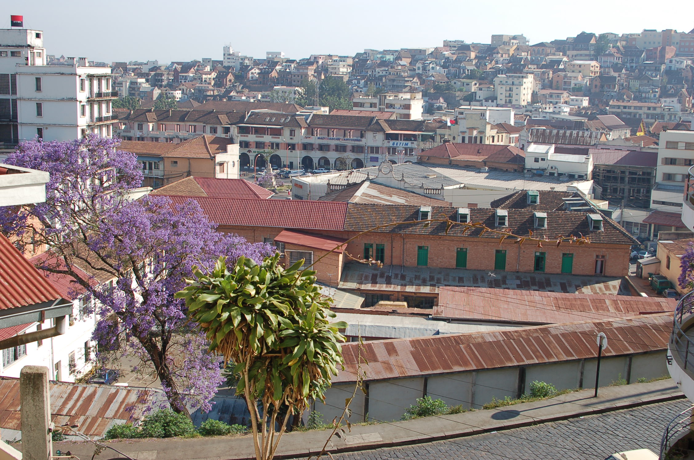 When Peter and I arrived in Tana we were quite shocked. First by the architecture — the city was built on hills and the houses were two stories high made with brick and had wooden balconies, unexpected in Africa. Apparently, some Scottish fellow helped plan the city and put his stamp on the look. Below the hills was a small lake surrounded by jacaranda trees. On one side of the lake was the Hilton Hotel, the only high-rise building in the country. But most surprising to us were the women. The highland Malagasy people are of Indo-Malay descent: long, straight, black hair; dark olive skin; and almond-shaped eyes. Considering we were off the S.E. coast of Africa, we were quite surprised. On that very first day wandering around the city, I heard myself say, “This is a place I could get stuck in for a while.” It proved itself true.